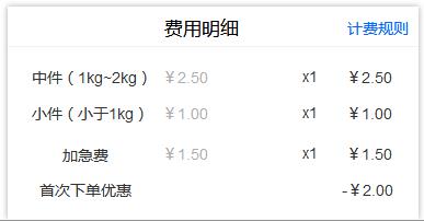 c、费用明细中首次下单优惠金额在一单有多个快递的情况下显示的是实际优惠金额。