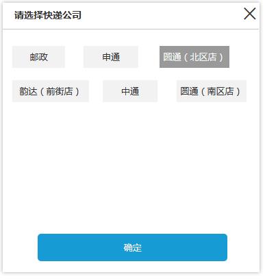 2、默认不选中任何快递公司,无选中的情况下,置灰禁用确定按钮,选中后再次点击可取消选中。