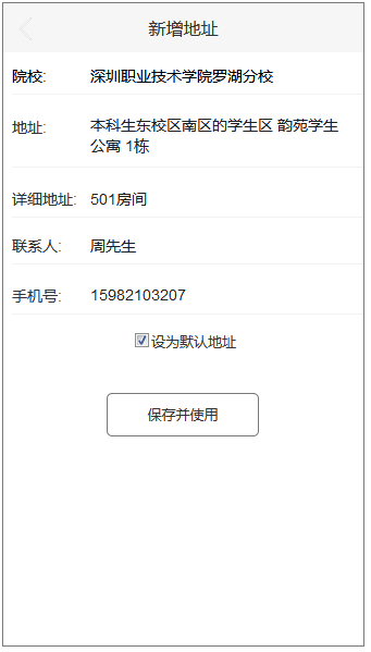 (1)无论是从下单页直接进入新增地址页面,还是点击选择地址页面的新增地址按钮进入新增地址页面,点击保存并使用后,直接返回下单页面。