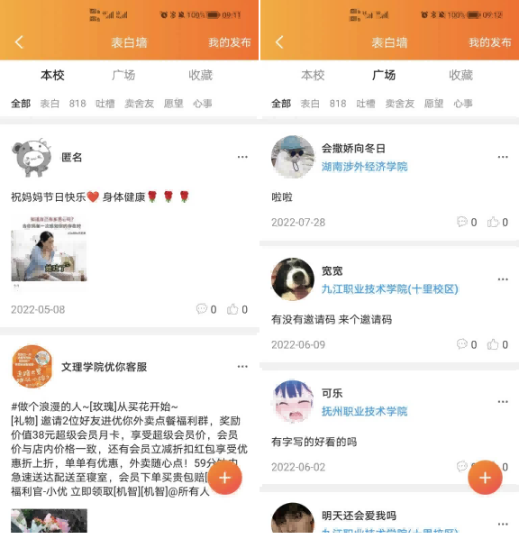 优你校园表白墙,主要给学生提供一个表白平台,提升用户活跃度增加用户粘性。表白墙的广场功能,显示优你校园所有合伙高校的表白数据,增加互动性和趣味性。
